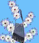 Slanted denim fringe. Unlined raw denim. Lightweight. For small every day items. Denim jeans and colors vary slightly per order.